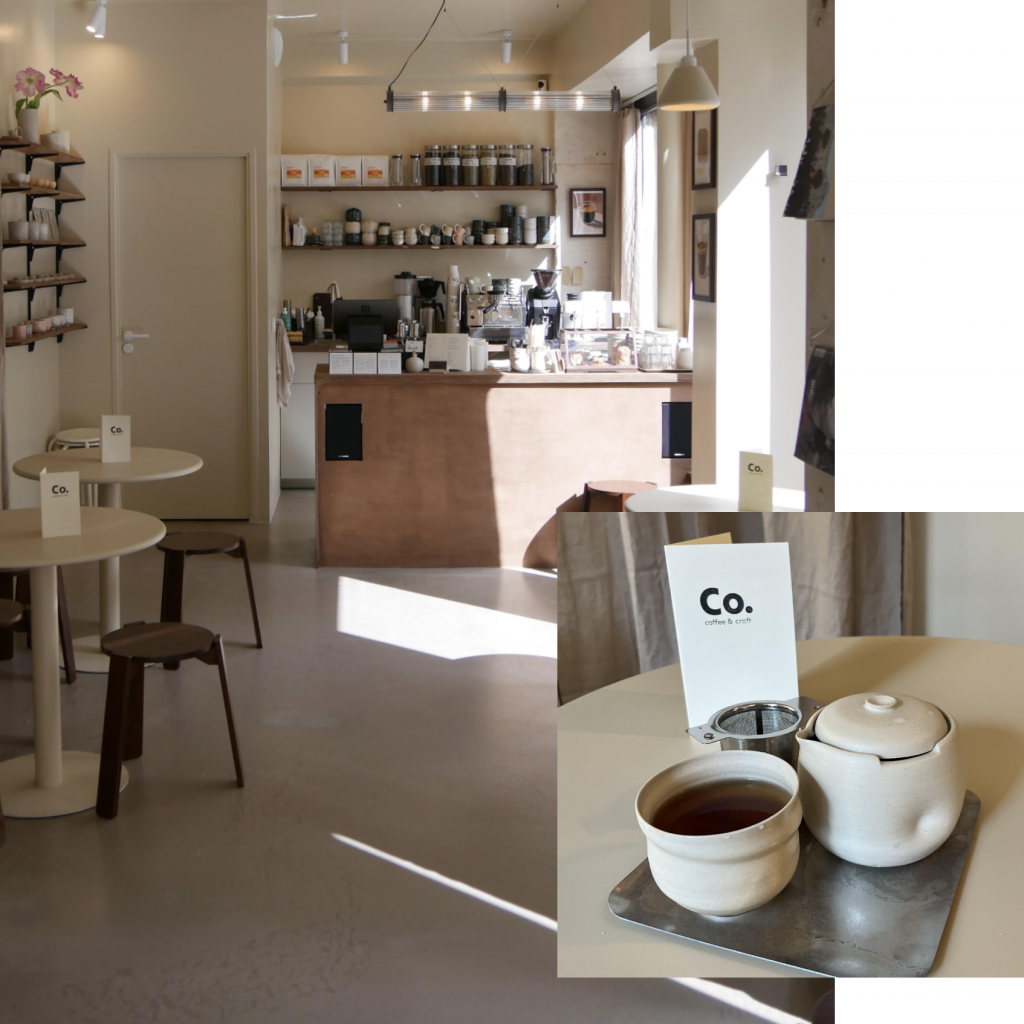 CO. coffee & craft est un espace hybride et convivial, où café de spécialité et boutique artisanale se rencontrent. Au cœur du lieu, un atelier de céramique visible depuis la salle invite les clients à découvrir le travail artisanal tout en savourant une boisson.